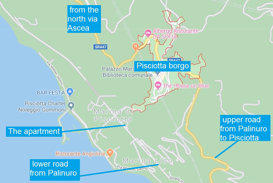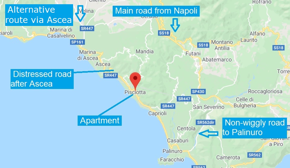 Although approaching Pisciotta directly from the north is the most logical this will involve tranversing a section of unstable road - not accessible to larger vehicles